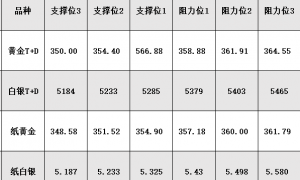 注:纸黄金和纸白银参考的是工商银行纸黄金和纸白银的价格波动。上表阻力位和支撑位是参考多周期K线图,多个技术指标和K线形态等综合分析得出。 MyFxtops...